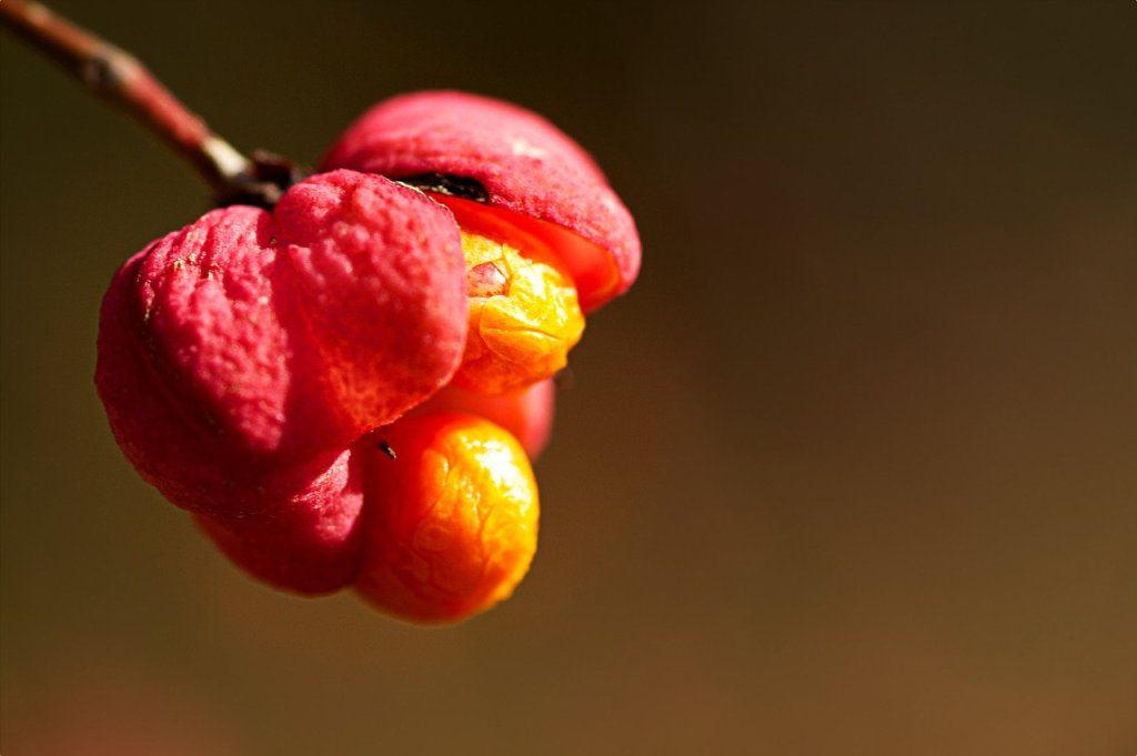 Leur capacité à transformer votre jardin en une fresque aux couleurs chaudes est incontestable ; ses fruits sont des petites capsules roses à quatre lobes (souvent appelées bonnet d’évêque en raison de leur forme), qui renferment des graines orange vif attirant les regards et la faune.
