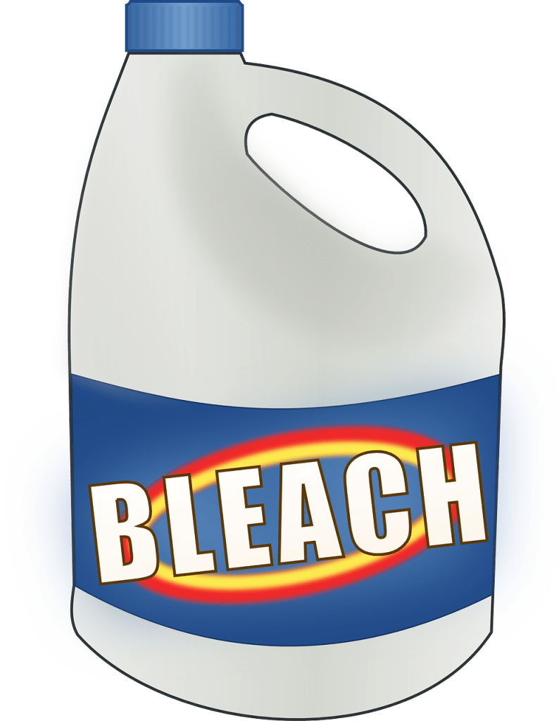 Pour les tissus de nature fragile, il est conseillé d’utiliser de l’eau oxygénée au prix de 4 euros le flacon de 200ml. Pour cela, mélangez une dose de ce produit avec 9 doses d’eau.